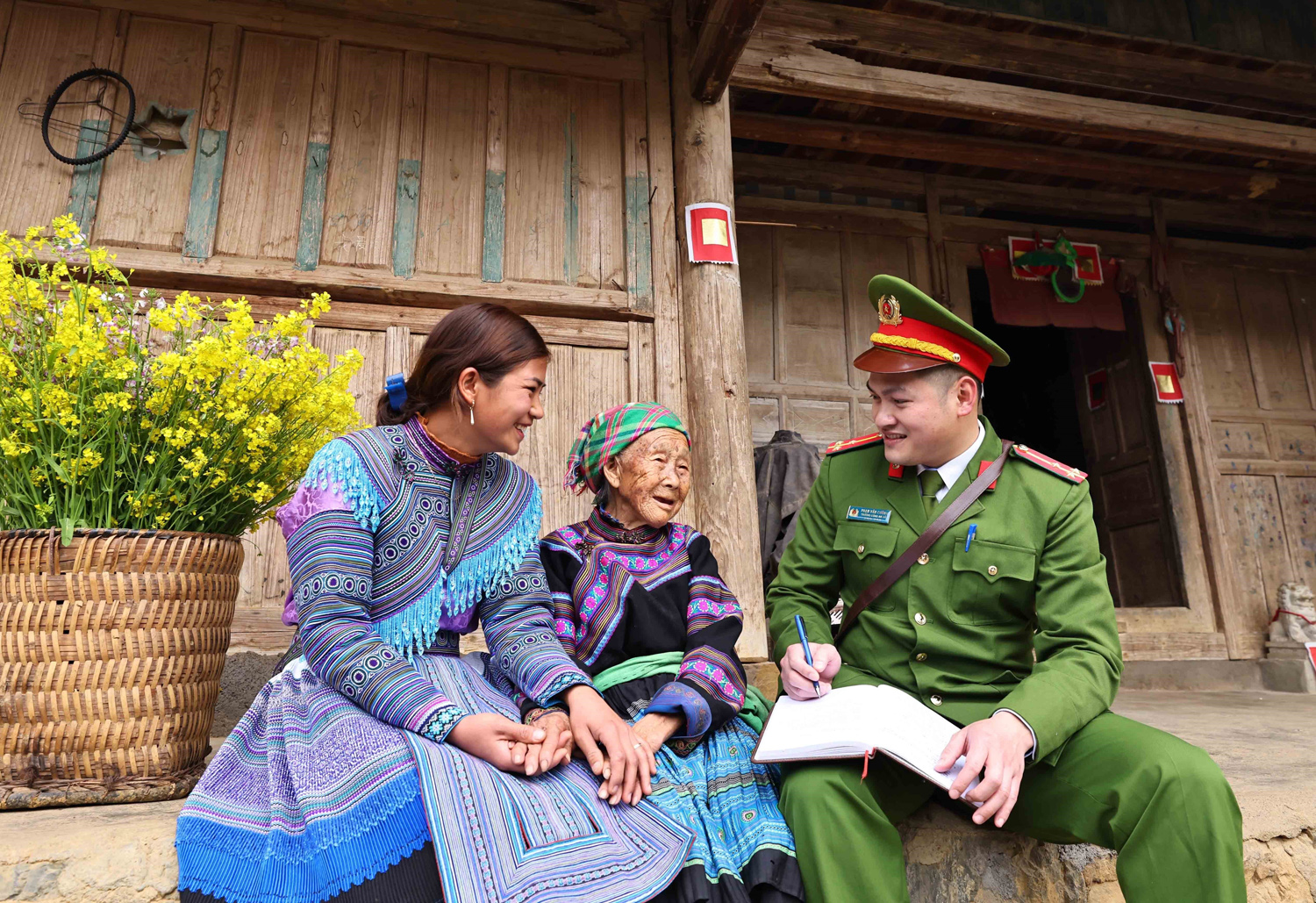 Công an xã Dìn Chin, huyện Mường Khương, tỉnh Lào Cai tuyên truyền đường lối của Đảng, pháp luật của Nhà nước cho nhân dân trên địa bàn. Ảnh: TTXVN