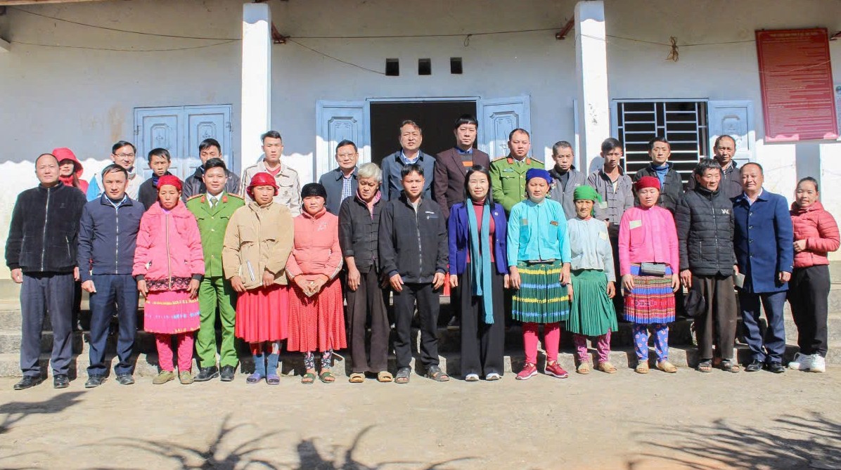 Đoàn công tác tặng quà và chụp ảnh lưu niệm với nhân dân thôn Sủng Sỳ và Sủng Lỳ xã Lũng Phìn