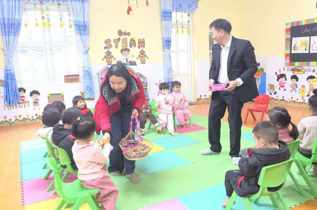 Đồng chí Vương Thuý Hằng, Phó trưởng ban Tuyên giáo và Dân vận Tỉnh uỷ thăm Trường mầm non xã Minh Sơn.