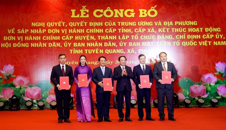 1. Thành lập tỉnh Tuyên Quang trên cơ sở hợp nhất tỉnh Tuyên Quang với tỉnh Hà Giang; thực hiện mô hình chính quyền địa phương hai cấp; sắp xếp tổ chức bộ máy và tinh gọn biên chế