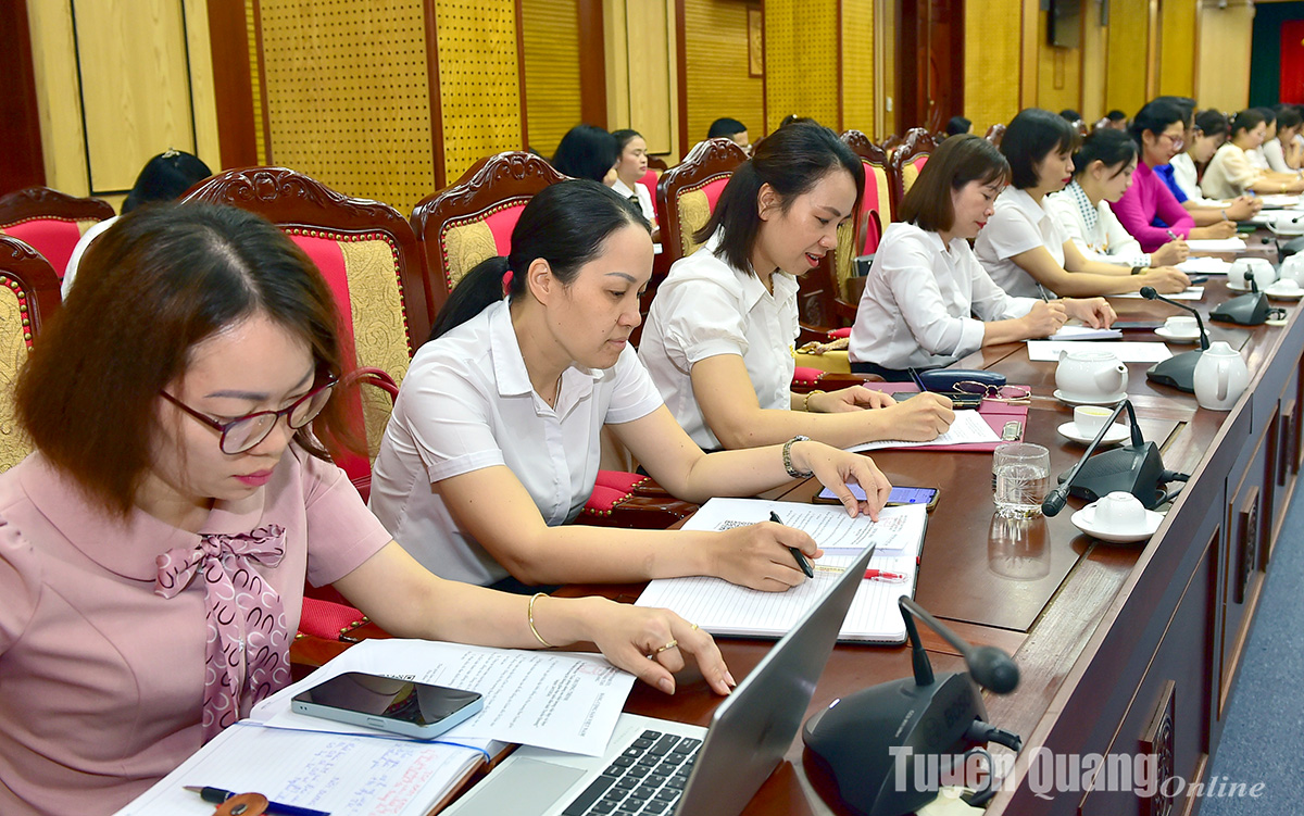 Đồng chí Nông Thị Bích Huệ, Ủy viên Ban Thường vụ Tỉnh ủy, Trưởng Ban Tuyên giáo Tỉnh ủy, Trưởng Ban Văn hóa - Xã hội, HĐND tỉnh dự và chủ trì hội nghị.